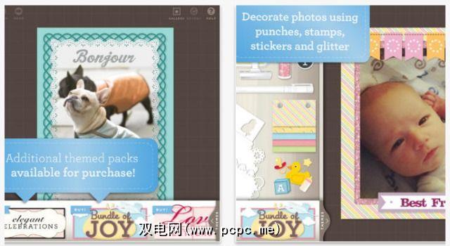 该最后一个应用程序对于不确定会在活动上花费多少时间的剪贴簿用户很有帮助。下载是免费的,如果您想使用其他套件,则可以每套0.99至3.99美元的价格购买。原始而有趣的功能是能够以幻灯片形式查看您创建的页面。