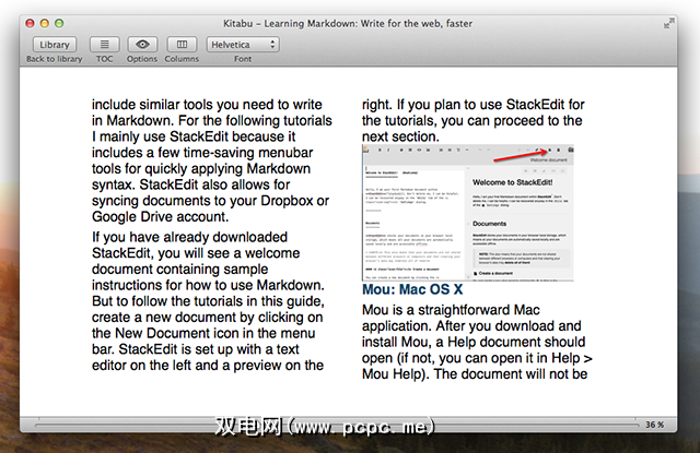 如果您要不使用Mavericks,或者宁愿避免将软件绑定到特定的在线书店,Kitabu值得研究。这款开放源代码阅读器具有带列的极简主义界面,并允许您自定义字体。