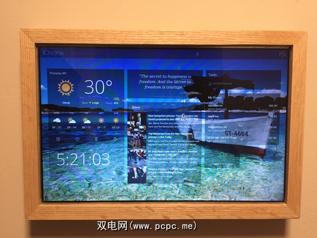 家庭仪表板是使用相框的好方法,因为它使您可以创建自定义信息显示在您喜欢的照片之上。来自Reddit用户 eguliyev 的特定版本显示了时间,天气,报价,新闻,任务和库存。使用iChrome扩展程序,您可以进行相同的设置或自定义自己的设置。