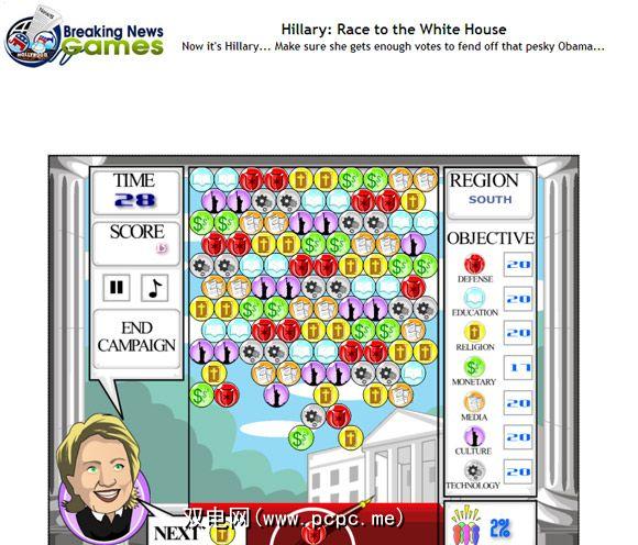 该在线Flash游戏网站的名称揭示了该目的。我们知道,希拉里(Haryary)并未登上总统职位,但您仍然可以在她竞选活动中通过收集积分来帮助她。这个游戏非常简单,属于我们所谓的“浪费时间"游戏。所有游戏均由政治,商业,体育和娱乐以及世界之类的负责人安排。您可以使用诸如Celebrity Hitman:Terrorist Alert之类的射击游戏,并为世界和平赢得布朗尼积分。