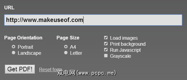 这是一种原始工具几乎没有选择,但是它肯定有其用途。您可以告诉它以纵向或横向模式保存页面,加载或忽略页面上的图像,包含或忽略页面的背景,在转换之前运行或忽略页面上的JavaScript,甚至将所有内容转换为灰度以防万一。