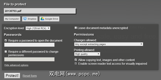 如果您需要快速限制对以下内容的访问PDF, PDF保护使使用密码加密文件变得容易。此工具的优点在于,保护不仅限于简单的密码保护;您可以设置不同的权限级别来限制用户对文件的操作。