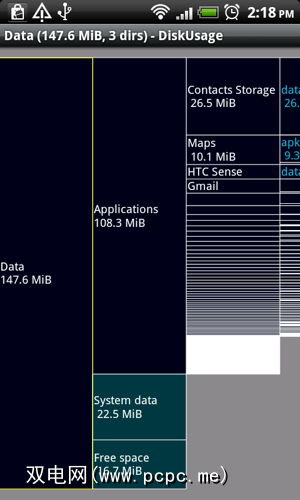 DiskUsage是一个免费的应用程序,可让您直观地查看手机空间的使用情况。当然,它会让您找到忘记的那些超大文件!