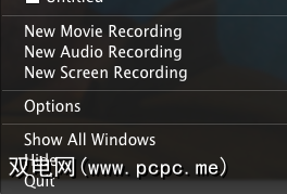 当您打开QuickTime并坐在扩展坞中时,就对了-单击图标,然后在底部,您将看到以下内容: