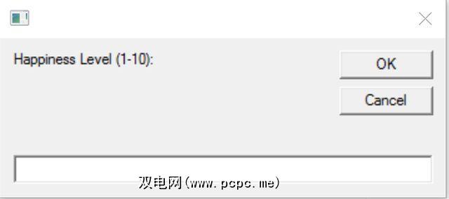 Option ExplicitDim strMoodDim strWeightDim strExerciseDim strDiet' Prompt for mood, weight, exercise, dietstrMood = Inputbox( "Happiness Level (1-10):" )strWeight = Inputbox( "Enter today's weight:" )strExercise = Inputbox( "How many minutes did you work out?:" )strDiet = Inputbox( "Do you feel like you ate well today?:" )Dim objFSO, objFolder, objShell, objTextFile, objFileDim strDirectory, strFile, strTextstrDirectory = "c:\temp"strFile = "\MyDailyLog.csv"strText = strMood & "," & strWeight & "," & strExercise & "," & strDiet' Create the File System ObjectSet objFSO = CreateObject("Scripting.FileSystemObject")' OpenTextFile Method needs a Const value' ForAppending = 8 ForReading = 1, ForWriting = 2Const ForAppending = 8Set objTextFile = objFSO.OpenTextFile _(strDirectory & strFile, ForAppending, True)' Key Section to write the strText to the file.' Writes strText every time you run this VBScriptobjTextFile.WriteLine(strText)objTextFile.CloseWScript.Quit启动此.vbs文件时,首先会提示您输入所有要跟踪的因素。在此示例中,我使用了情绪,体重,运动和饮食。