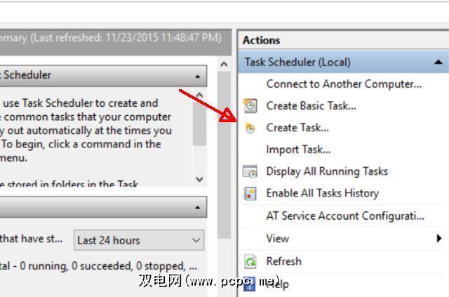 首先,通过(在Windows 10中)单击开始按钮,单击,启动任务计划程序。 >所有应用程序,然后输入“ 计划",然后从应用程序列表中选择任务计划程序。一旦出现主窗口,选择 Create Task…