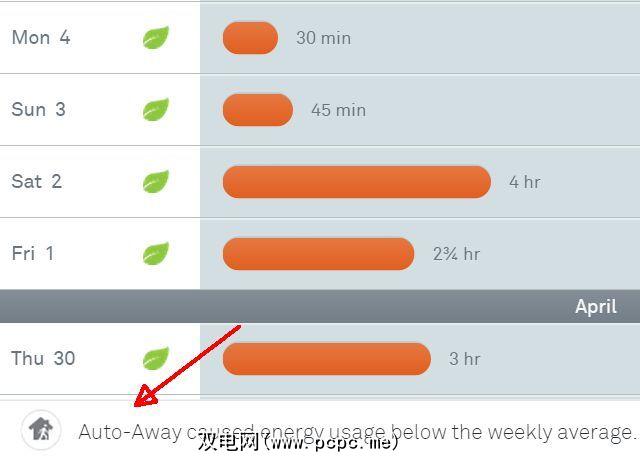 但是,下次我在在线Nest仪表板上检查能源使用情况时,我发现Nest准确跟踪我何时出门,并为我调整恒温器设置。