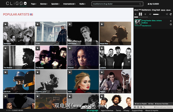 Cliggo是免费的Spotify替代品。它没有您通过Spotify获得的某些高级功能(例如离线收听),但可以选择创建和保存播放列表以及收听流派广播电台。当您浏览网站以寻找其他音乐添加到播放列表时,播放不会中断。 Cliggo从YouTube提取了大部分音乐,因此很容易找到任何歌曲,然后以一种易于创建播放列表和在歌曲中跳过的方式呈现它。