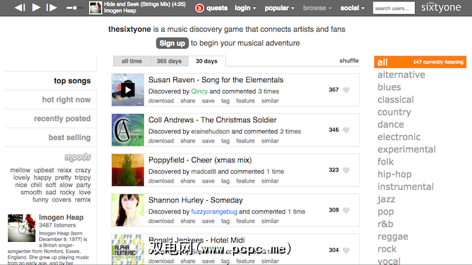 相反,TheSixtyOne拥有许多由艺术家自己上传的音乐,并呈现出有机会在其他人之前发现新音乐。也就是说,您可以在TheSixtyOne上找到一些著名的艺术家,包括Imogen Heap,MIA和MGMT。