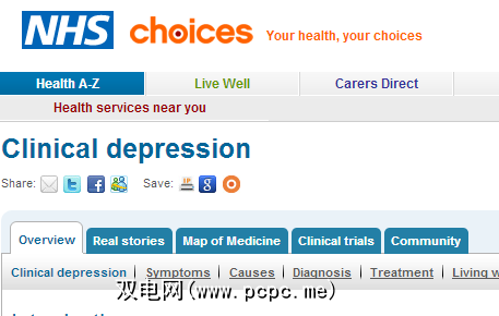 美国国家卫生局的 NHS Direct 再次回到英国,对抑郁症进行了很好的介绍,其中包括自我评估测试,以了解您是否确实确实患有抑郁症(尽管最终的诊断应始终由适当的医生面对面进行,但此测试将为您提供初步的治疗结果)。加上所有关于症状,治疗,病因和与抑郁症患者在一起生活的常规信息(永远不应低估)。