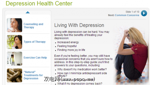 好的旧版 WebMD < / em>。当每个人尴尬地痒到鼻子下方或难看的瑕疵时,每个人都会去的地方。如您所料,他们还有很多关于抑郁症的内容,在告诉他们您患有哪种抑郁症之后,它会告诉您什么可能会有所帮助。