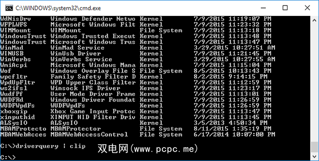 命令提示符中的某些命令主要用于输出信息。例如, ipconfig 输出系统的IP地址信息,而 driverquery 输出驱动程序信息。