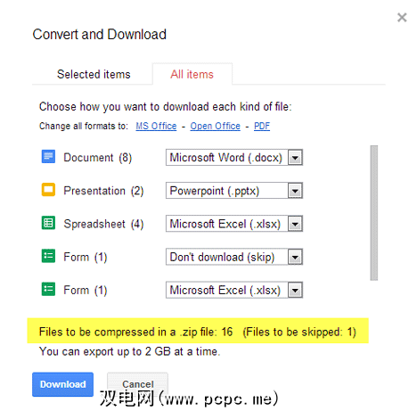 2。在“下载"对话框中,单击所有项目以显示文件总数。如果您不打算下载文件,请点击取消。此快捷方式相对于其他快捷方式的一个优点是,它还包括子文件夹中的文件数。