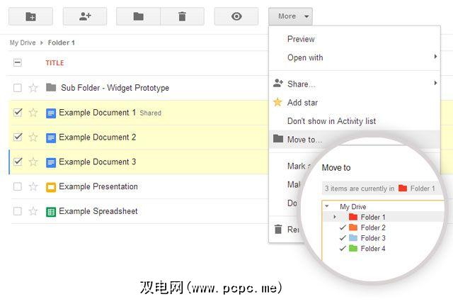 如果以上述示例为例,则Google云端硬盘不会为移动文件创建多份副本。对一个文件夹中文件所做的任何更改都会反映在其他文件夹中的其他文件中。