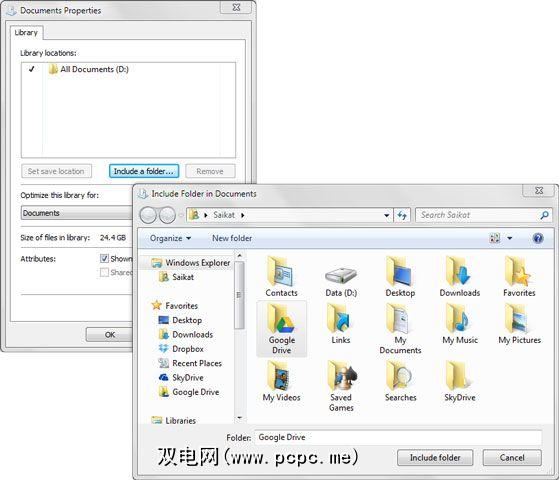 2。选择包括文件夹并找到您的Google云端硬盘文件夹。如下面的屏幕截图所示,选择Google云端硬盘,然后选择设置保存位置。单击应用。