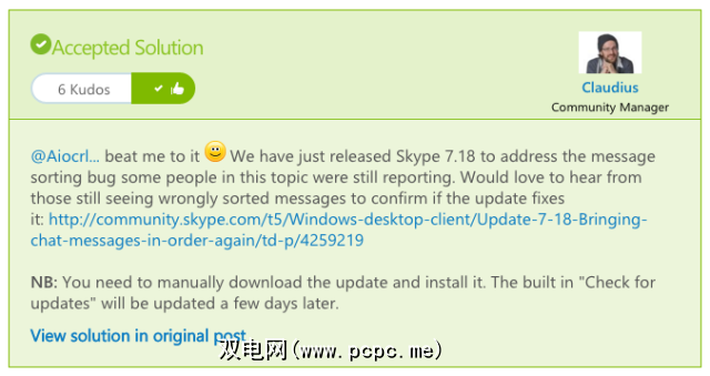 在Skype更新到7.17.0.105版本之后,当两个人在Windows桌面版本的Skype上进行即时聊天时,消息将出现混乱。