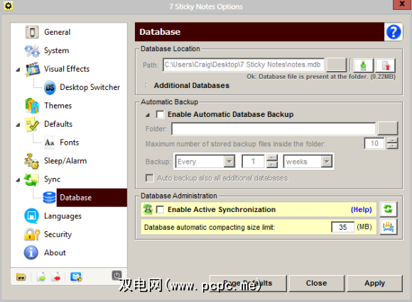 7 Sticky Notes的备份和同步选项绝对值得赞赏。该应用程序提供了自动方式来定期备份Notes数据库并保持同步。对我来说,这是非常重要的。