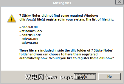 取决于您的用户帐户控制设置,第一次尝试运行该应用程序时,您可能会收到上述错误。如果这样做,请以管理特权再次运行该应用程序,并且7 Sticky Notes应该能够为您自动注册DLL。