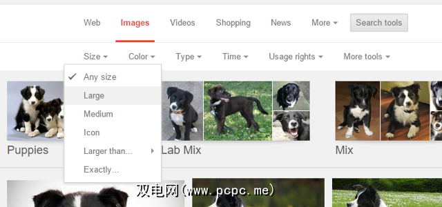 执行搜索后,请点击搜索工具并使用大小下拉菜单。最好使用大图像,但按Google标准的中等分辨率可能会出现问题。如有可能,请尝试提前投影演示文稿,以确保所有内容看起来都正确。