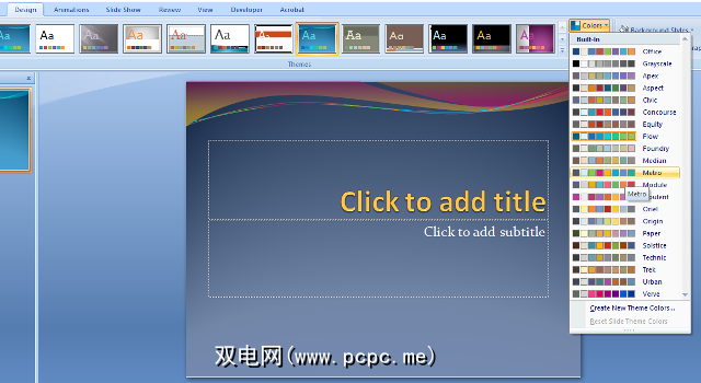 要使用主题,请转到设计功能区的“选项卡"。您会在标有主题的部分中看到很多选项,如果找不到合适的选项,则可以在线访问更多PowerPoint模板。但是请记住,这个主题只是模板的骨架。
