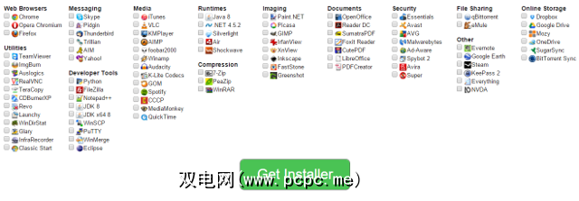 Ninite将大量基本软件编译为一个易于操作的工具。使用安装程序。强烈推荐它提供的所有功能,在系统上安装它时,不会遇到任何工具栏或其他麻烦的目标。最重要的是,该软件和服务是免费的。
