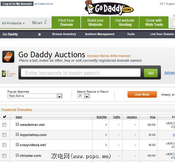 您可以选择自定义销售页面,以便与您从中吸引潜在买家的域名页面配合得很好。另一个出售域名的热门地方是GoDaddy拍卖行。