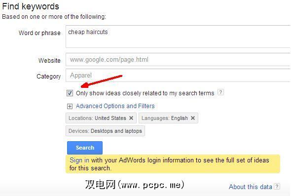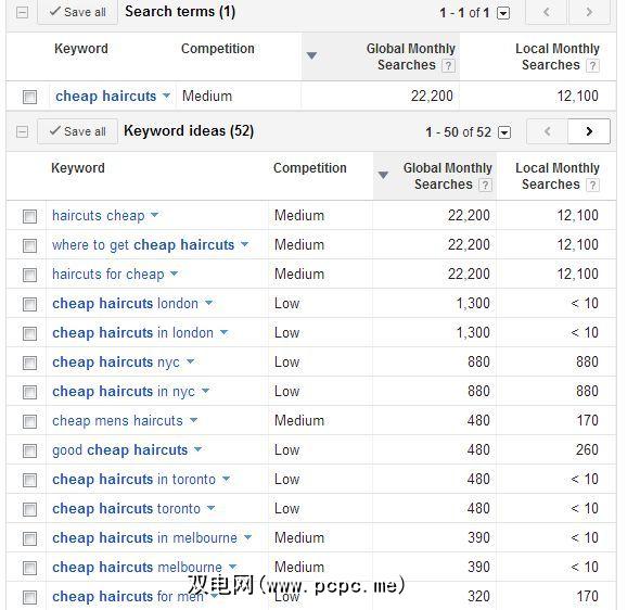 如果人们希望创建一个金融博客,关于美国联邦赤字的问题,如果他们能够获得一个名为Federaldeficit.com的域名,那对他们来说肯定是非常有价值的,不是吗?有几种快速简单的方法可以评估您域的关键字价值。转到Google Adwords,然后输入组成您的域的单词。例如,如果您的域名是“ cheaphaircuts.com",则键入“ cheap haircuts"。