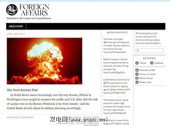 对于Tumblr球迷们来说,对外交政策问题感兴趣的另一本必读书籍是《外交事务》。该博客是对外关系委员会的出版物,着重介绍了《外交事务》杂志网站上的最新著作。 Tumblr博客为读者提供了一种有趣的方式,即通过一个稍微更精心策划的平台来跟上该杂志的最新帖子,这对于那些不想浏览《外交事务》所有文章的人特别有用。