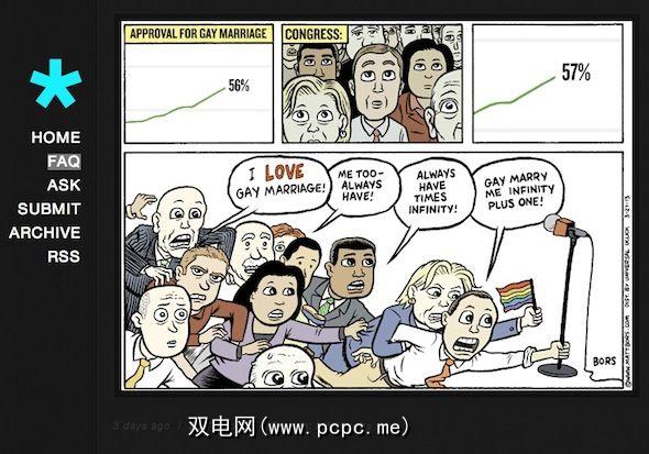 政治漫画正是它在标签上说。 Tumblr博客被公认是“以美国为中心"的,侧重于自由政治,因此它可能不适合所有口味。也就是说,它收藏了令人印象深刻的动画片,从枪支管制到同性婚姻,您可以想象到的一切,还有一些国际事务都可以投入。