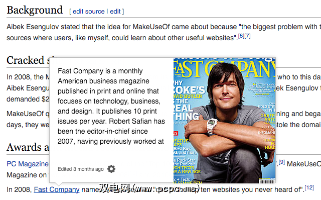 悬浮卡可以为您节省点击次数。将鼠标悬停在链接上,将显示一个预览窗格,该窗格显示文章的简介存根以及主图像。它为您节省了很多麻烦,极大地丰富了Wikipedia的经验!就像有用的Wikipedia插件一样,但是您无需安装任何东西。