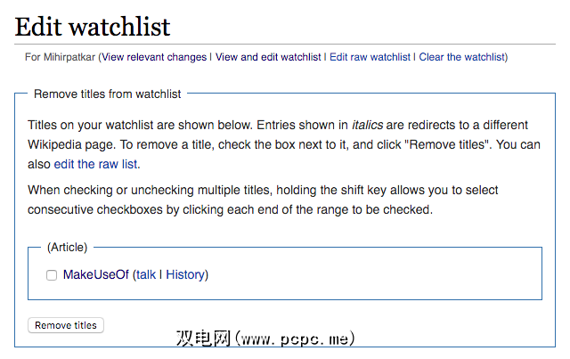 通过转到首选项>监视列表>查看并删除监视列表中的标题