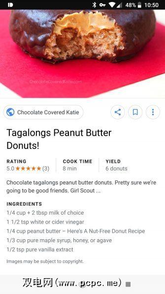 首先,请注意其中的徽章图片的左下角。根据您的查询,这些可能是食谱, GIF ,产品或类似名称。轻按一个,您将获得的不仅仅是图像。