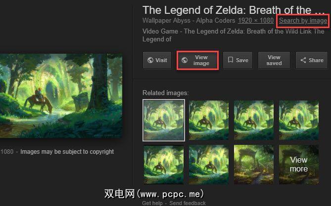 在栏中键入要搜索的内容,然后按 Enter 。您可能会看到大量结果。单击图像以在标注框中查看它。这将显示其分辨率和相关图像,以及用于访问页面,共享页面并保存以供以后使用的按钮。