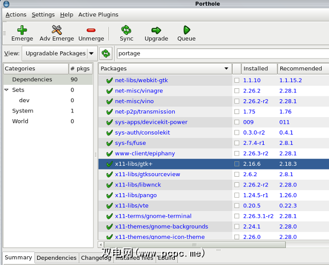 还有rpmdrake,这是一个urpmi的前端。在openSUSE上,您可以使用YaST安装应用程序。 Gentoo有一个用于出现的图形前端,称为Porthole: