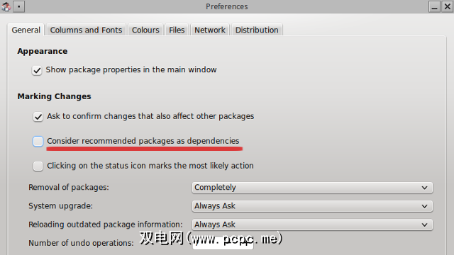 软件包管理器有时会选择多个软件包进行安装。这些是您应用程序的依赖项-正常运行所需的其他程序包。一些软件包管理器将“推荐"并标记相关(但不是强制性)的软件包进行安装。可以在 Settings / Preferences 对话框中禁用此行为。