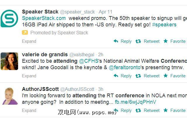 一旦您参加了会议,您就开始进行会议和问候的全部事情,发放名片,所有这些,人们肯定会根据宣传材料上的信息。这可能包括您的Twitter feed,您的博客或您的公司。为了准备大量访客来检查您的身份和从事的活动,请确保您已发送了大量有关该活动以及您打算在该活动中进行的社交更新。