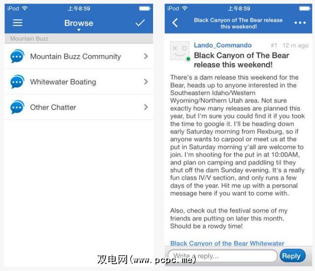 什么使皮划艇体验更加甜美?一群由爱好者共同分享您的热情的地方。 Mountain Buzz的网站上有许多论坛,可以满足您的各种帮助和皮划艇友谊。该应用程序可让您在下一次旅行时方便地带动社区。 p>