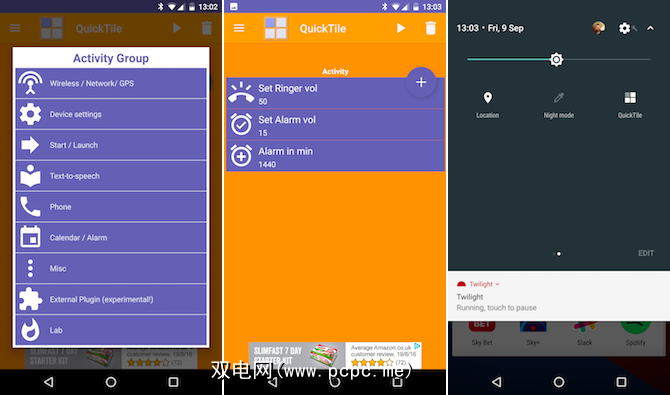 QuickTile类似于“快速设置"版本Tasker应用程序。它使您可以将多个功能组合在一起,并通过单击图块将其全部激活。例如,您可以启动视频播放器,并同时增加音量和屏幕亮度。或者,您可以直接在Compose Tweet屏幕中启动Twitter客户端。