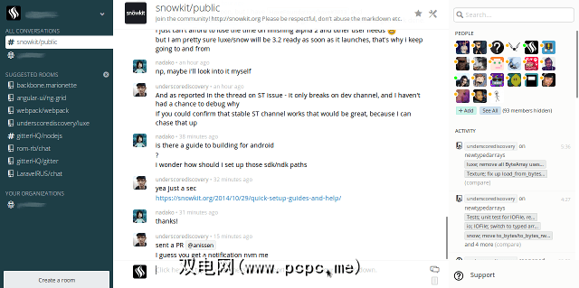 Gitter 是Github用户的绝佳社交聊天工具。 (登录系统要求您拥有并使用Github帐户。)基本上,它是现代网络版的Internet中继聊天:您可以加入并交谈的许多不同聊天室。