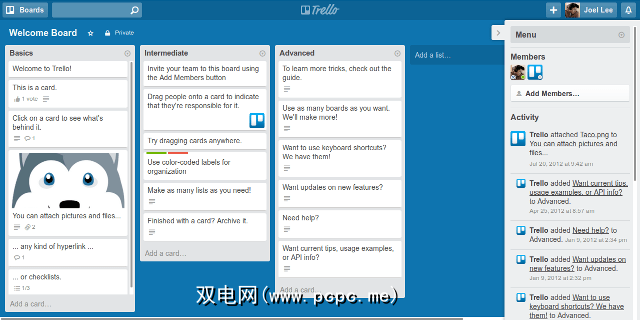 PCPC.me编辑器中的许多功能因 Trello 的组织功能而生死攸关。运作方式如下。您创建木板(项目),每个木板由多个列表(类别)组成,这些清单由单独的卡片(任务)组成。
