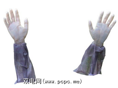 为了使您的墓碑更加恐怖,请添加几个僵尸手臂桩。没有什么比死人爬出坟墓使孩子们忙起来更像了。这些死灰白的手和灰色的袖子应该可以解决问题。