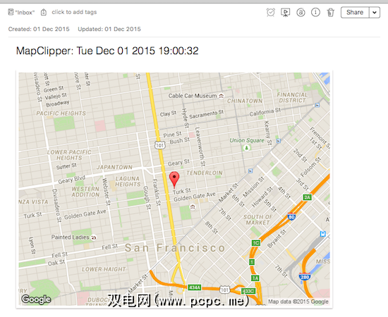MapClipper旨在通过允许您选择固定大小的Google Map中的特定区域来帮助解决该问题。广场。有了这个按钮后,请点击“保存到Evernote"按钮,地图的剪切部分将被发送到您的Evernote帐户。