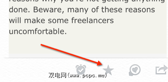 打开便笺后,现在可以点击菜单栏底部菜单栏中的星标图标笔记。 Evernote主页的底部中心将显示一个星标选项卡,点击该选项卡将显示您所有已加星标的项目。