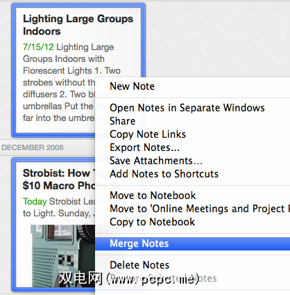 您可能不知道的另一个功能是该功能合并两个或多个笔记,方法是选择并右键单击要合并的笔记(在卡片视图中),然后在下拉菜单中选择合并笔记菜单。