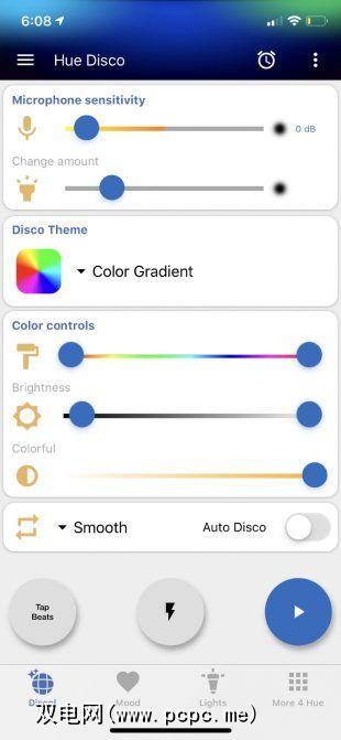 与Ambify类似,Hue Disco提供了一大优势。无需在iOS设备上播放音乐即可开始互动式灯光秀,Hue Disco将通过麦克风收听音乐。因此,除了设备上的任何音乐外,它还支持各种其他选项,例如蓝牙扬声器等。