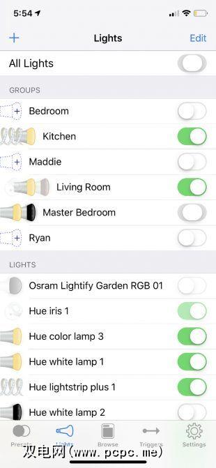 由于该应用程序与Philips Hue,LIFX和WeMo灯泡兼容,因此您可以将来自不同制造商的硬件放入一个单个组即可轻松控制。