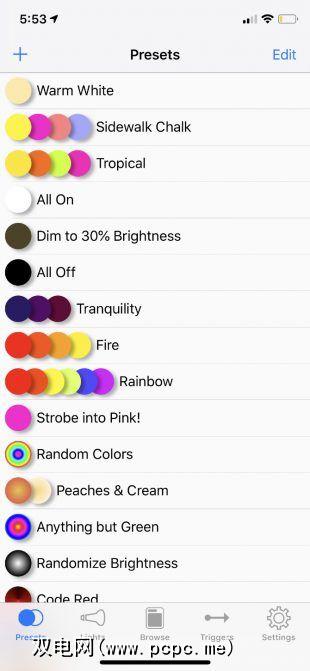该应用程序现在具有许多快捷方式,使您只需轻按几下即可调整灯光。您可以快速更改灯光颜色,甚至可以将灯泡设置为最近使用过的四个场景之一。