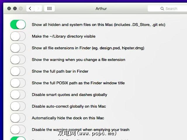 Arthur为您提供了一组选项,不仅可以调整Finder,还可以调整整个Mac。其中的某些设置默认情况下在OS X上可用。但是您要么必须在不同的位置查找它们,要么它们涉及一些复杂的过程。 Arthur将所有这些设置捆绑在一起,并将它们放置在易于访问的中央位置。
