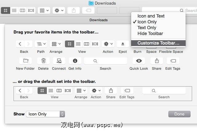 在Finder工具栏上可以找到用于切换图标视图,编辑标签和共享项目等功能的按钮。要根据您的喜好重新排列工具栏项目,请单击视图>自定义工具栏来访问工具栏设置。您也可以通过工具栏本身的上下文菜单中的自定义工具栏来访问它们。