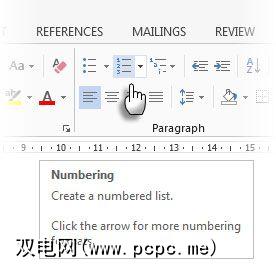 选中该列后,转到主页>段落>单击编号按钮以插入一个